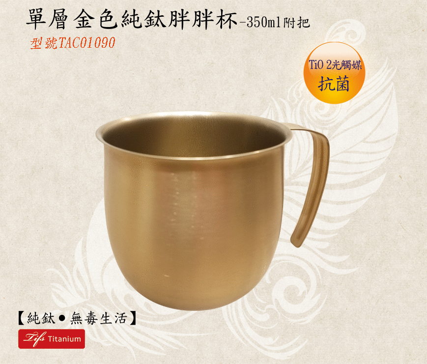 Tifs Titanium單層金色純鈦胖胖杯-350ml 附把