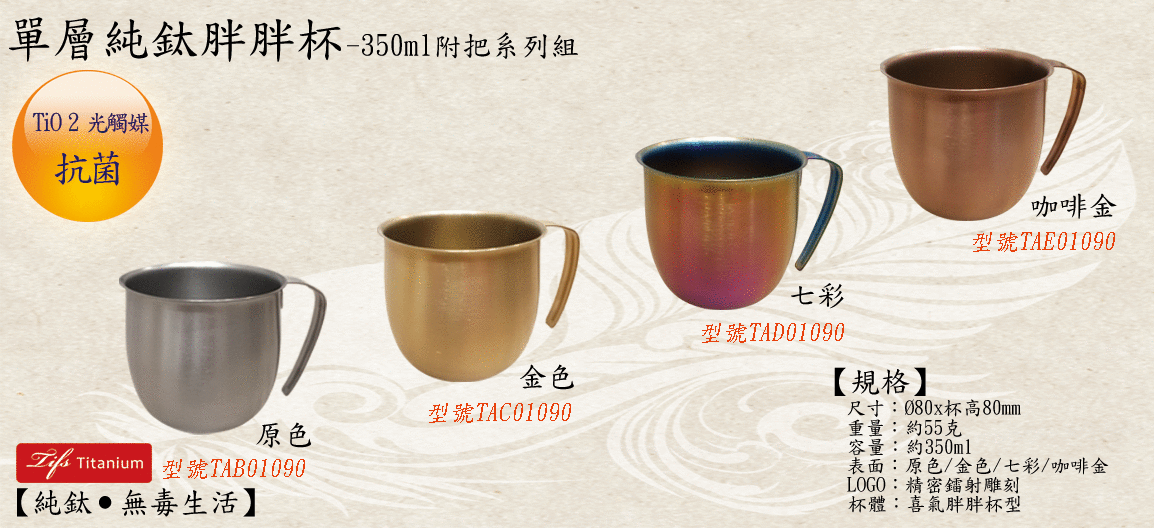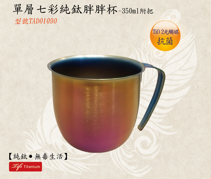 Tifs Titanium單層七彩純鈦胖胖杯-350ml 附把