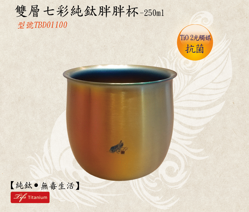 Tifs Titanium雙層七彩純鈦胖胖杯-250ml